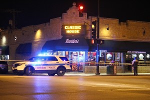 A silver minivan with bullet holes in the windows was parked on the south side of West Addison, surrounded by police tape. Police could be seen directing traffic in the intersection of Addison and Pulaski, where the bar is located.